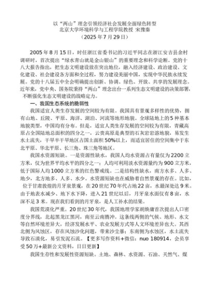 “党课荟”系列第371期宋豫秦:以“两山”理念引领经济社会发展全面绿色转型