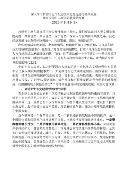 / “党课荟”系列第373期黄海峰:深入学习贯彻习近平生态文明思想 促进可持续发展