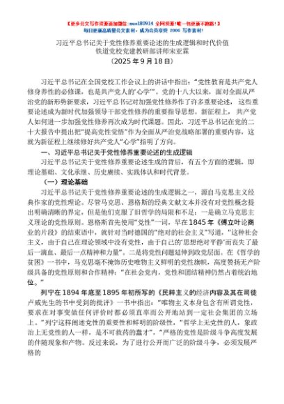 / “党课荟”系列第380期宋亚霖:习近平总书记关于党性修养重要论述的生成逻辑和时代价值