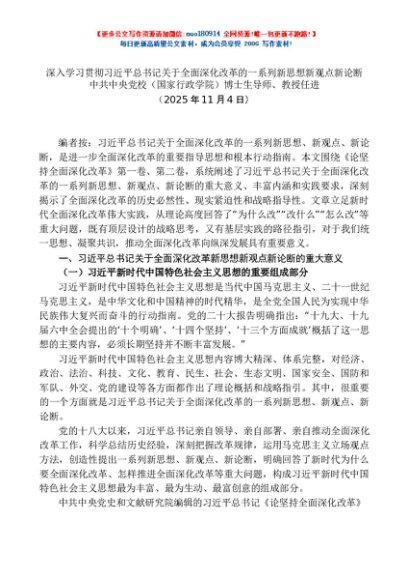 / “党课荟”系列第388期任进:深入学习贯彻习近平总书记关于全面深化改革的一系列新思想新观点新论断