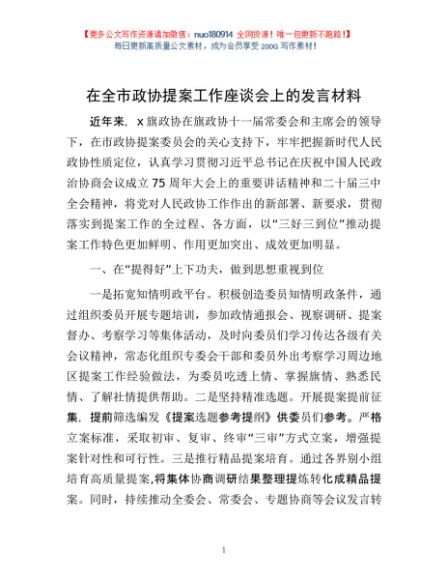 / 在全市政协提案工作座谈会上的发言材料