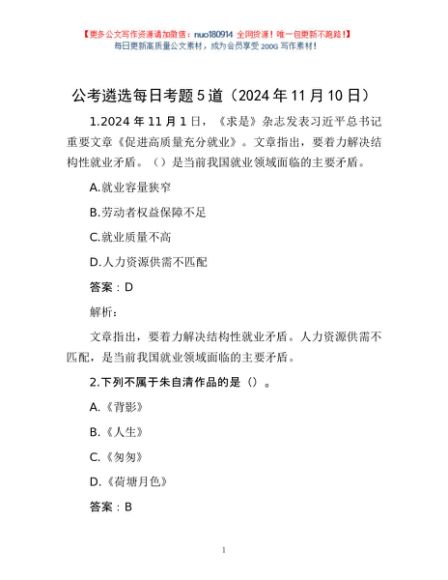 / 公考遴选每日考题5道(2024年11月10日)