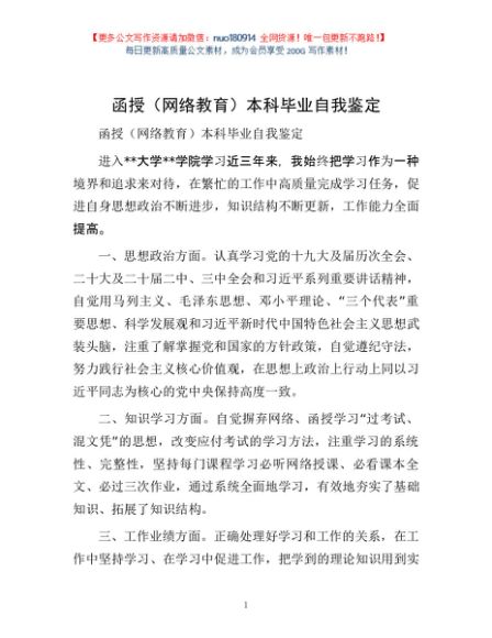 / 函授(网络教育)本科毕业自我鉴定