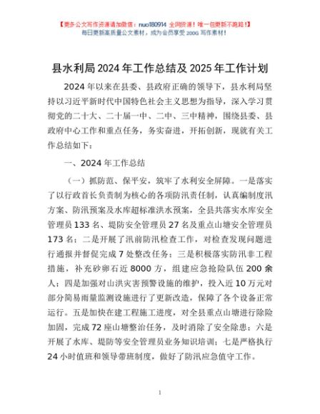 / 县水利局2024年工作总结及2025年工作计划