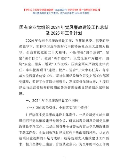 / 国有企业党组织2024年党风廉政建设工作总结及2025年工作计划