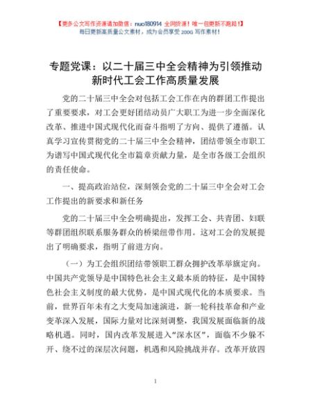 / 专题党课:以二十届三中全会精神为引领 推动新时代工会工作高质量发展