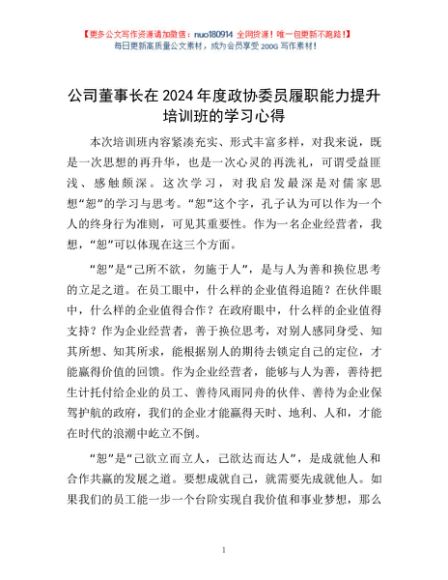 公司董事长在2024年度政协委员履职能力提升培训班的学习心得