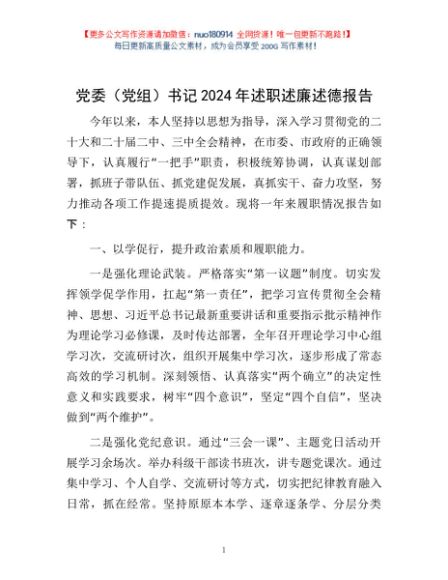 / 党委(党组)书记2024年述职述廉述德报告
