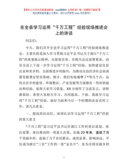 / 在全县学习运用“千万工程”经验现场推进会上的讲话