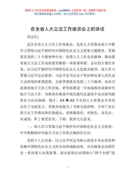 / 在全省人大立法工作座谈会上的讲话
