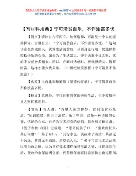 / 【写材料用典】宁可清贫自乐,不作浊富多忧