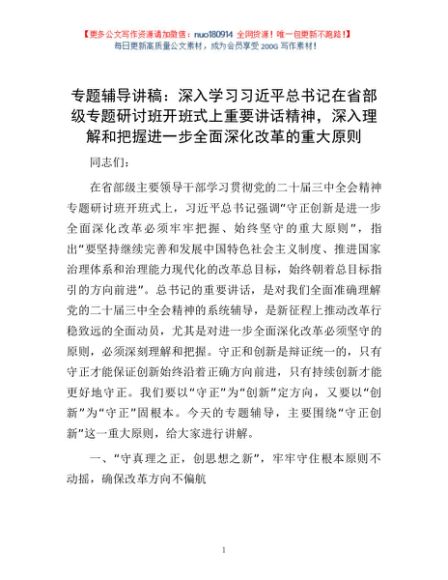 专题辅导讲稿:深入学习习近平总书记在省部级专题研讨班开班式上重要讲话精神,深入理解和把握进一步全面深化改革的重大原则