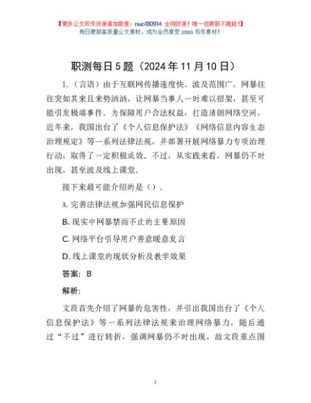 / 职测每日5题(2024年11月10日)
