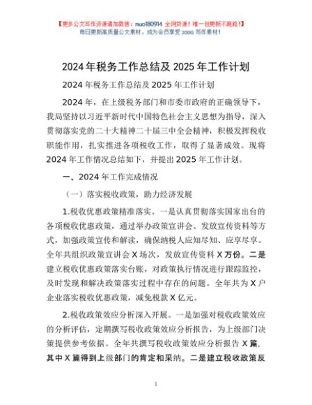 / 2024年税务工作总结及2025年工作计划
