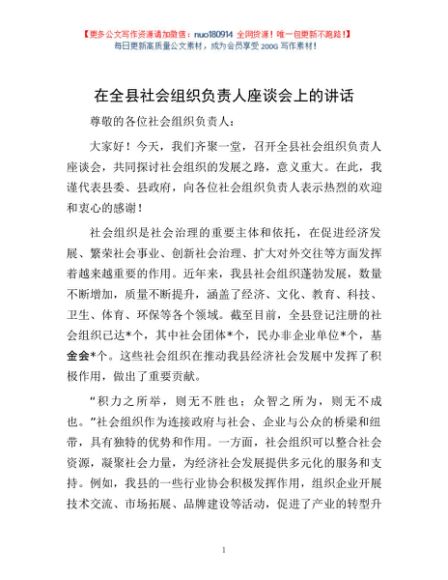 / 在全县社会组织负责人座谈会上的讲话