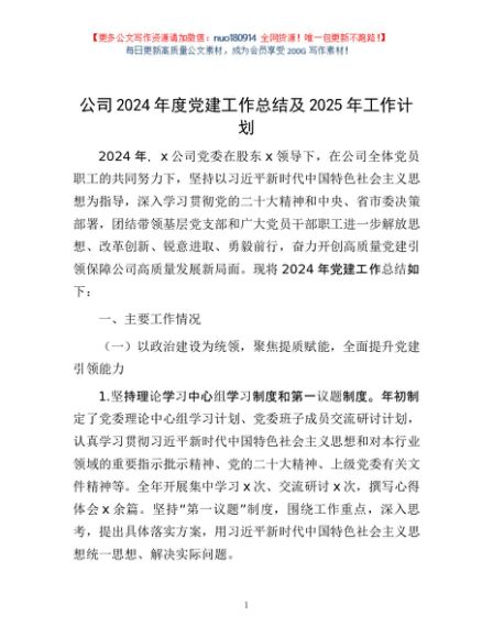 / 公司2024年度党建工作总结及2025年工作计划