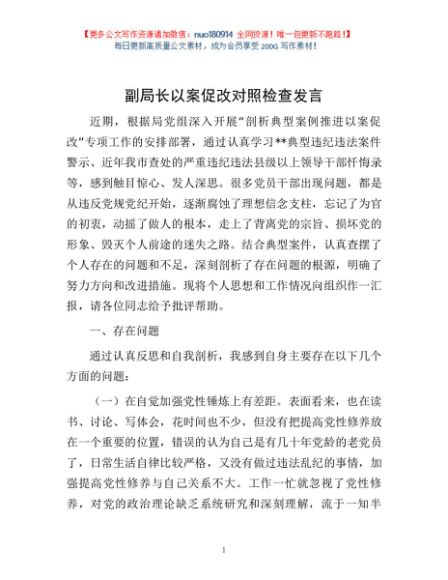 / 副局长以案促改对照检查发言