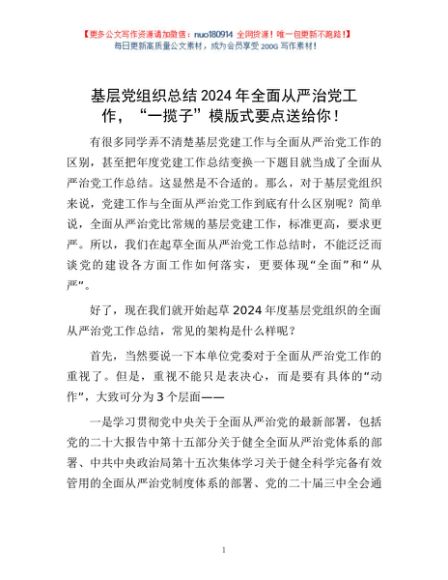 / 基层党组织总结2024年全面从严治党工作,“一揽子”模版式要点送给你!