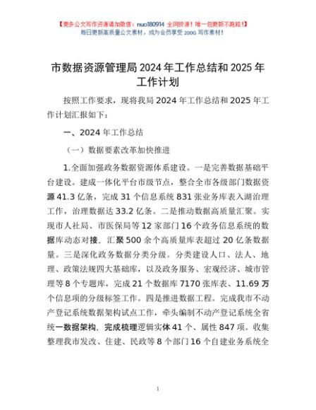 / 市数据资源管理局2024年工作总结和2025年工作计划