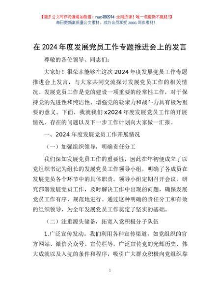 / 在2024年度发展党员工作专题推进会上的发言