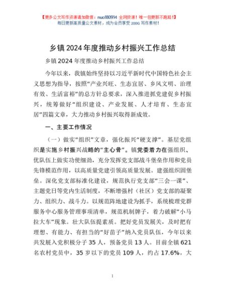 / 乡镇2024年度推动乡村振兴工作总结