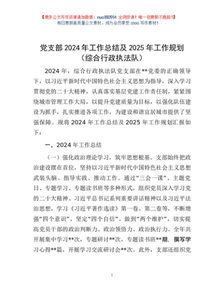 / 党支部2024年工作总结及2025年工作规划(综合行政执法队)