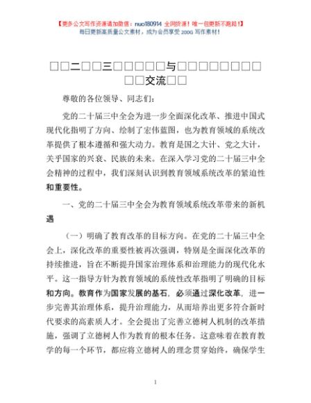 / 党的二十届三中全会精神与教育领域系统改革学习交流发言