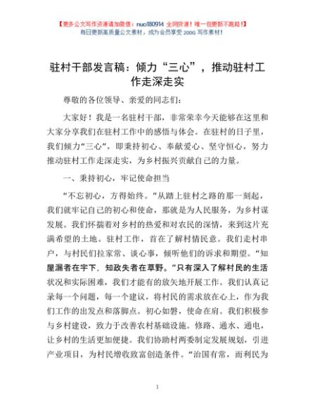/ 驻村干部发言稿:倾力“三心”,推动驻村工作走深走实
