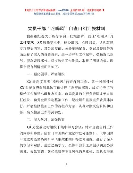 / 党员干部“吃喝风”自查自纠汇报材料