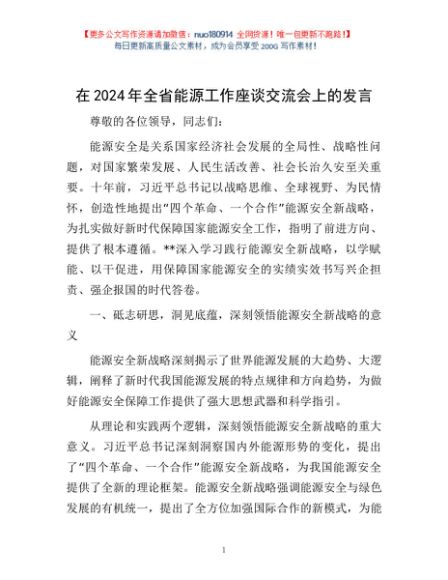 / 在2024年全省能源工作座谈交流会上的发言