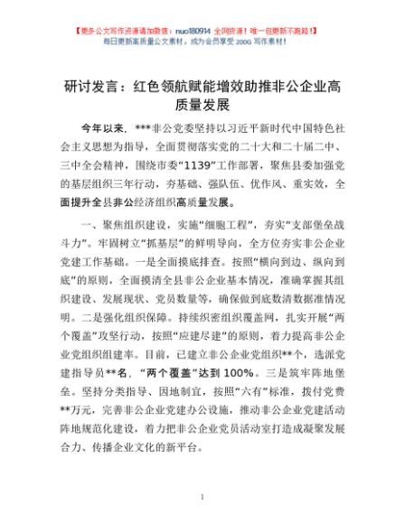研讨发言:红色领航 赋能增效 助推非公企业高质量发展