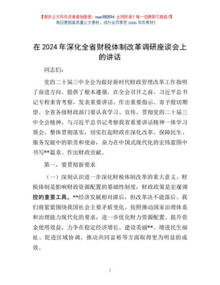 / 在2024年深化全省财税体制改革调研座谈会上的讲话