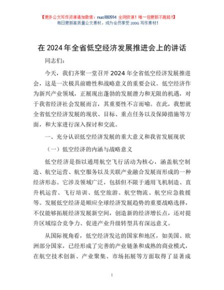 / 在2024年全省低空经济发展推进会上的讲话