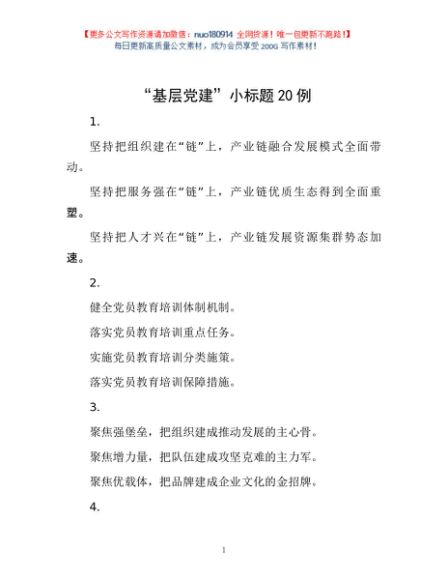 / “基层党建”小标题20例