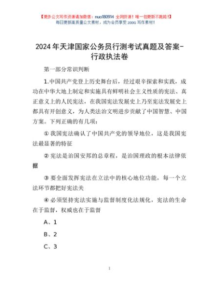 / 2024年天津国家公务员行测考试真题及答案-行政执法卷