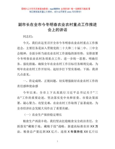 / 副市长在全市今冬明春农业农村重点工作推进会上的讲话