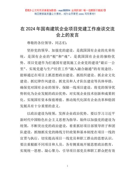 / 在2024年国有建筑企业项目党建工作座谈交流会上的发言