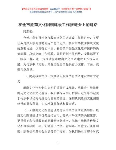 / 在全市殷商文化图谱建设工作推进会上的讲话