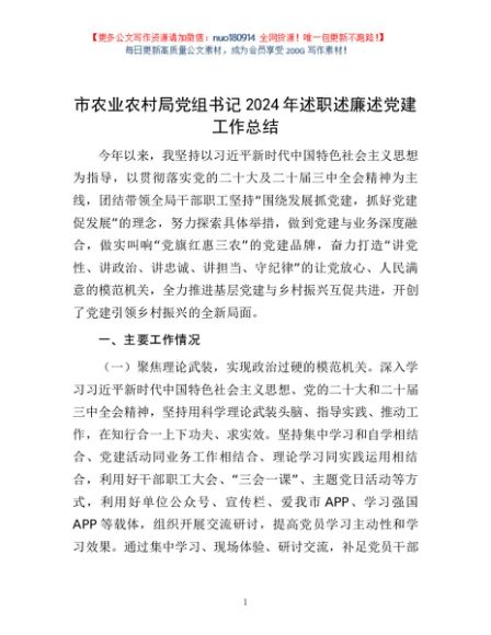 / 市农业农村局党组书记2024年述职述廉述党建工作总结