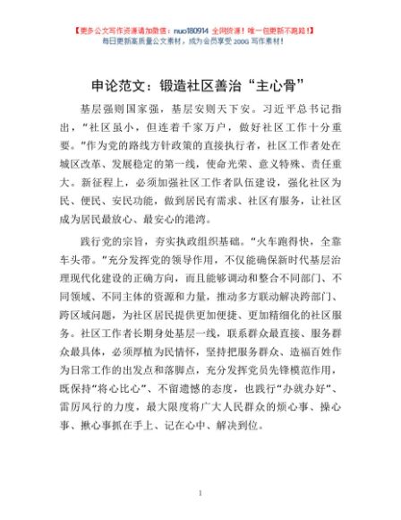 / 申论范文:锻造社区善治“主心骨”