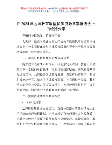 / 在 2024 年区域教育联盟优质资源共享推进会上的经验分享