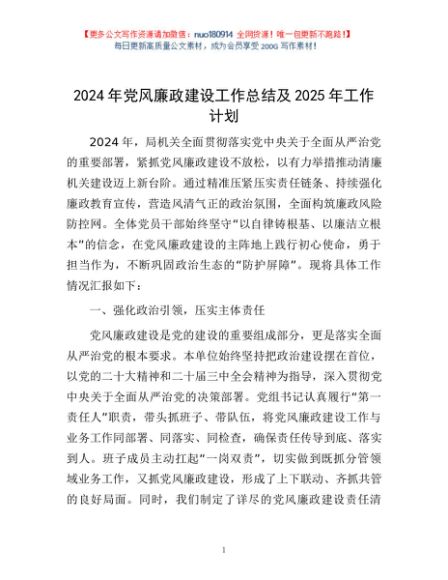 / 2024年党风廉政建设工作总结及2025年工作计划