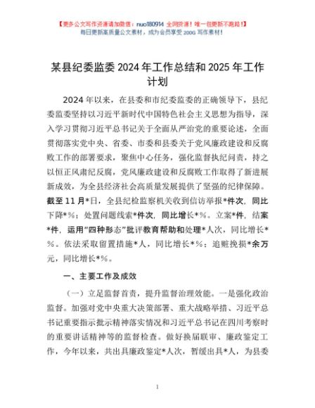 / 某县纪委监委2024年工作总结和2025年工作计划