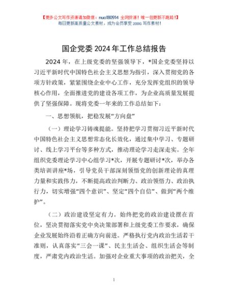 国企党委2024年工作总结报告