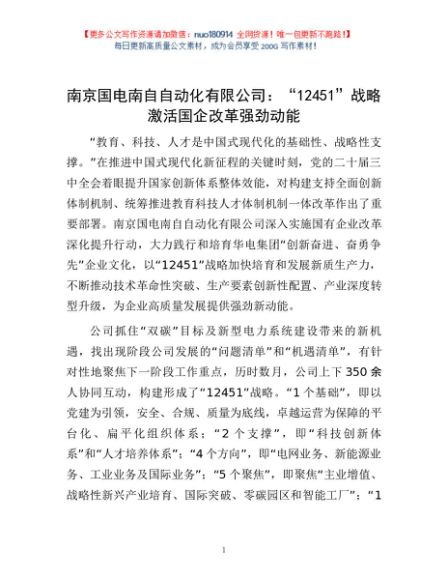 / 南京国电南自自动化有限公司:“12451”战略激活国企改革强劲动能