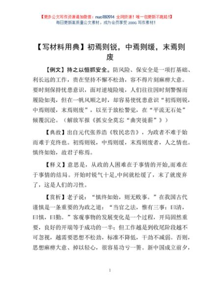 / 【写材料用典】初焉则锐,中焉则缓,末焉则废