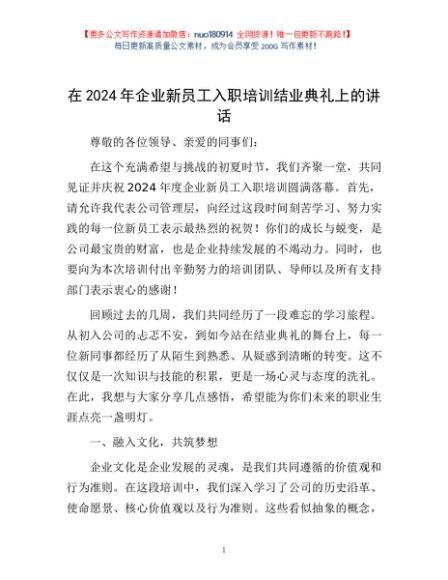 / 在 2024 年企业新员工入职培训结业典礼上的讲话