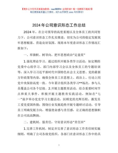 / 2024年公司意识形态工作总结