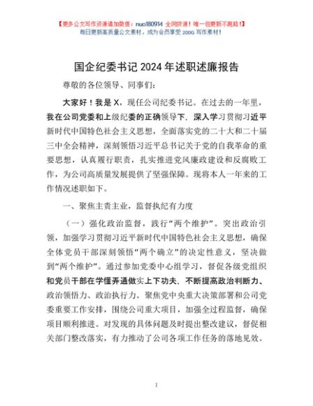 / 国企纪委书记2024年述职述廉报告