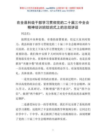 / 在全县科级干部学习贯彻党的二十届三中全会精神培训班结班式上的总结讲话